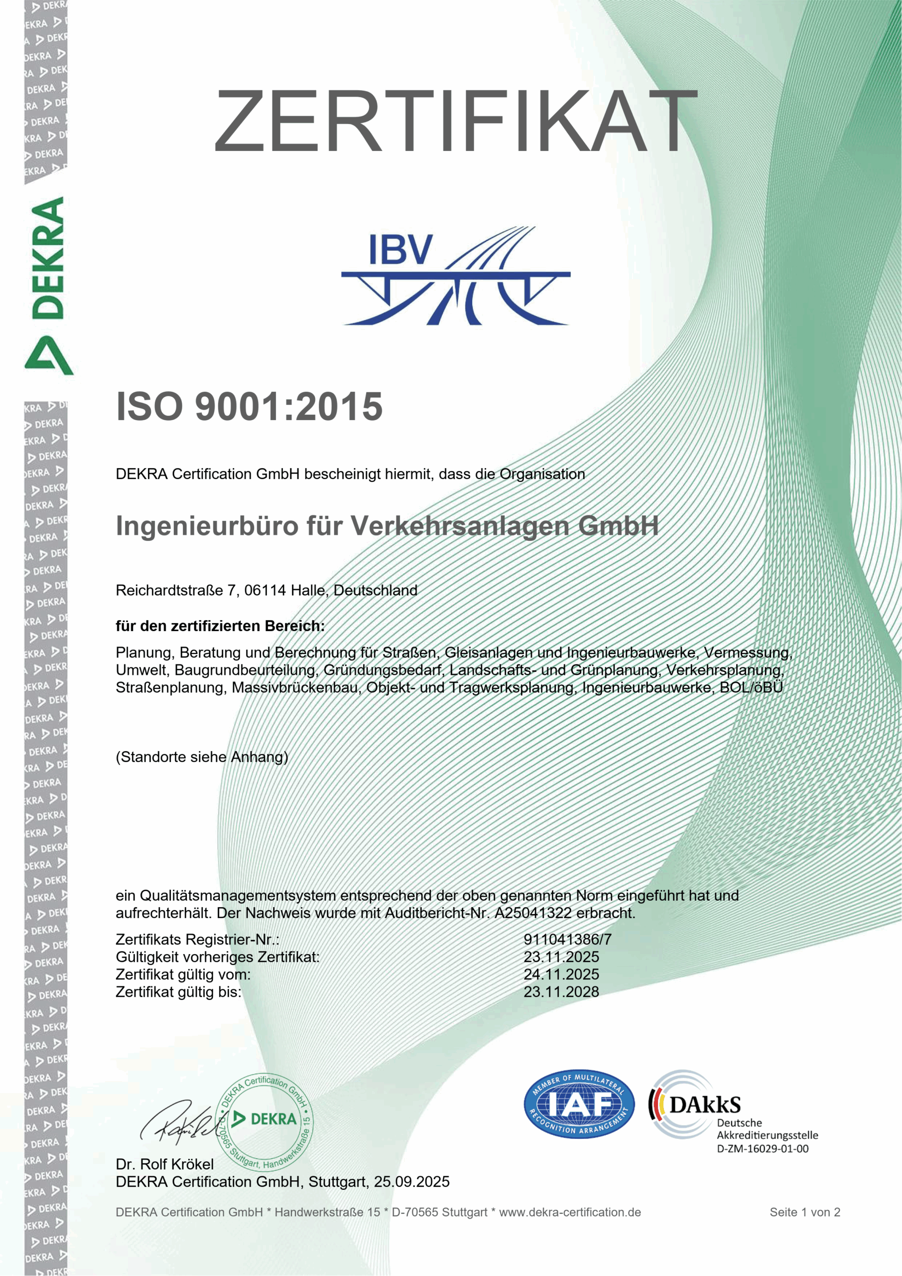 Die Ingenieurbüro für Verkehrsanlagen GmbH entstand 1990 aus dem Entwurfs- und Ingenieurbüro des Straßenwesens, Betriebsteil Halle, das im Jahr 1952 gegründet wurde. Die IBV GmbH ist erfolgreich auf dem Gebiet der Planung von Straßen und Brücken sowie im Bereich Verkehrsplanung, der Landschaftsplanung und des Immissionsschutzes tätig.